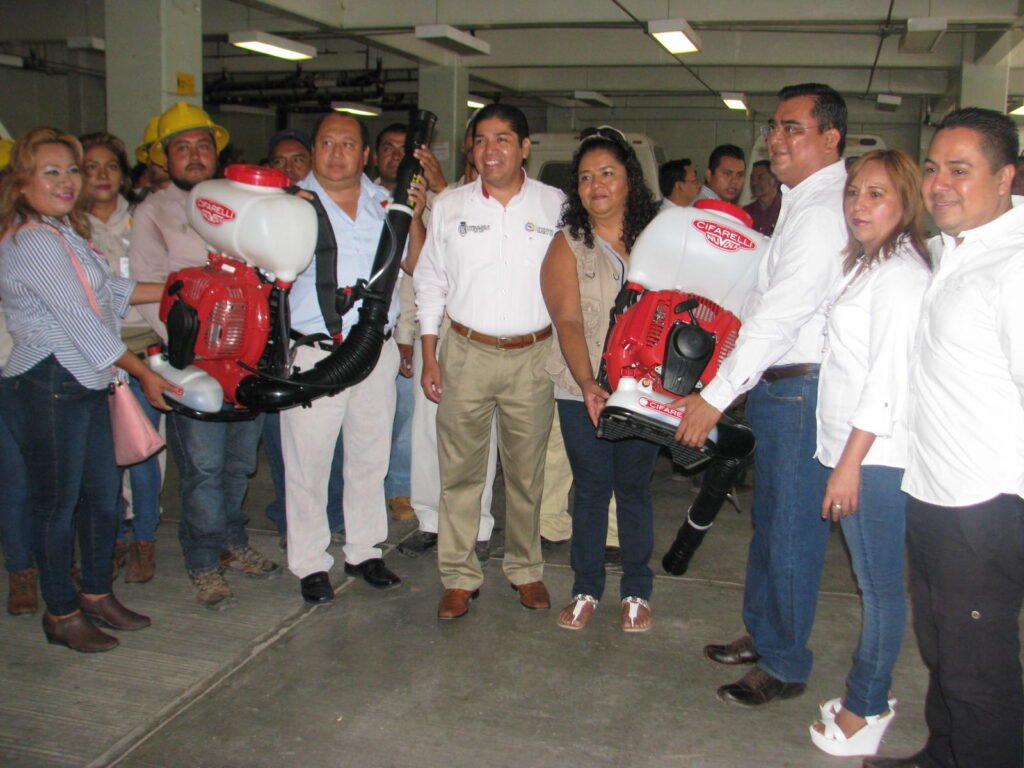El alcalde dijo que estos aparatos servirán para rosear en los domicilios particulares y eliminar los moscos que transmiten esta enfermedad tan peligrosa que ha cobrado vidas en la Montaña.