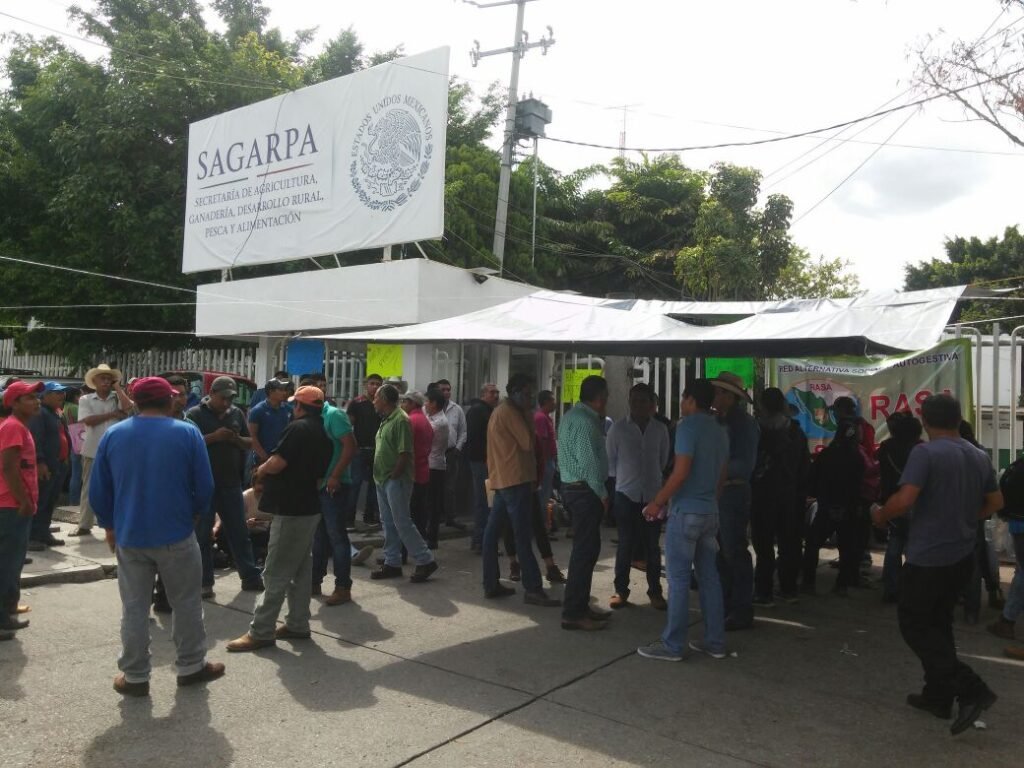 Preocupados porque la temporada de lluvias llegó, campesinos de la zona Norte y Montaña protestaron a las afueras de la delegación de la Secretaría de Agricultura, Ganadería, Desarrollo Rural, Pesca y Alimentación (Sagarpa), debido a que la dependencia no ha entregado los apoyos para la siembra de sus parcelas.
