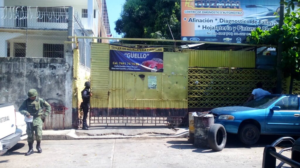 El primer caso se dio alrededor de las 11:00 horas, cuando se realizó el hallazgo de cuatro cadáveres que estaban en el baño del taller mecánico “Guzmán”, ubicado entre las calles Bernal y Niños Héroes de la colonia Progreso.
