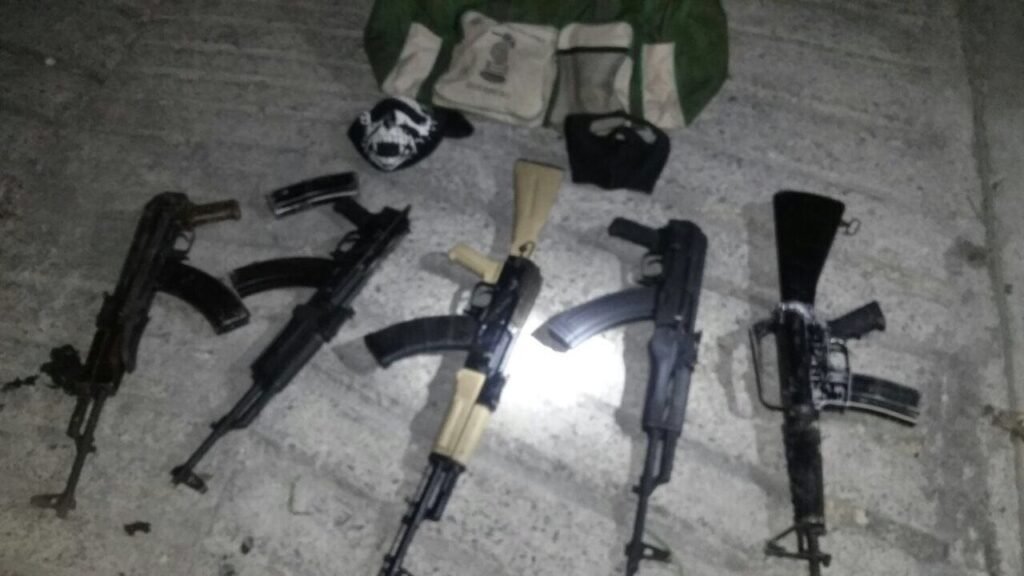 El vocero señaló que en el lugar fueron abandonados los dos autos compactos y 5 rifles de asalto, uno de ellos calibre .223 y 4 AK-47, todos con sus respectivos cargadores abastecidos, los cuales fueros asegurados y también puestos a disposición del MPF.