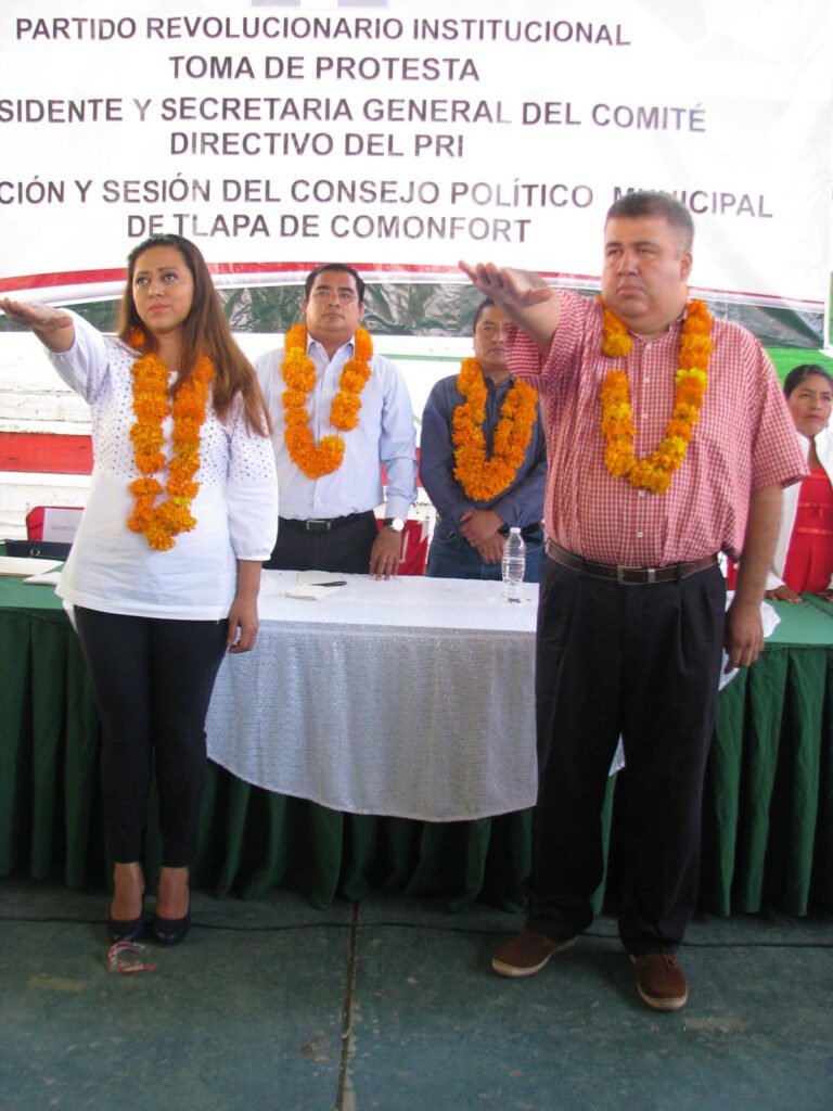 TLAPA.— Ante de militantes y la clase priista del municipio, Sergio Parra Villavicencio y Yenni Ibarra Palacios, rindieron protesta este domingo como presidente y secretaria general del Partido Revolucionario Institucional para el periodo 2017-2020.