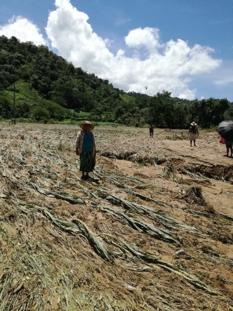 La comunidad de Mexcalapa, con alrededor de 700 habitantes, es una de las más afectadas, con al menos una decena de viviendas dañadas, cultivos de maíz arrasados, sin que hasta el momento se haya logrado cuantificar las hectáreas.