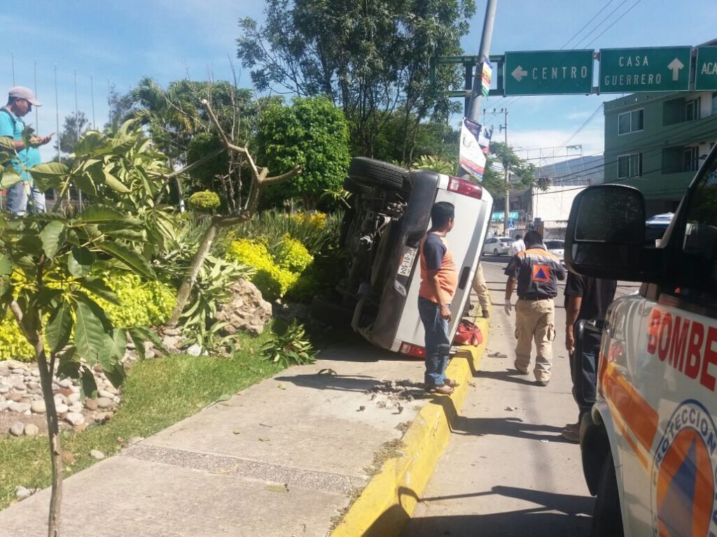 Una espectacular volcadura se registró la tarde de ayer en la glorieta del punto conocido como “Las Banderas” en la avenida Lázaro Cárdenas, dejando el saldo de un señor golpeado—quien se dio a la fuga—, y una niña herida.