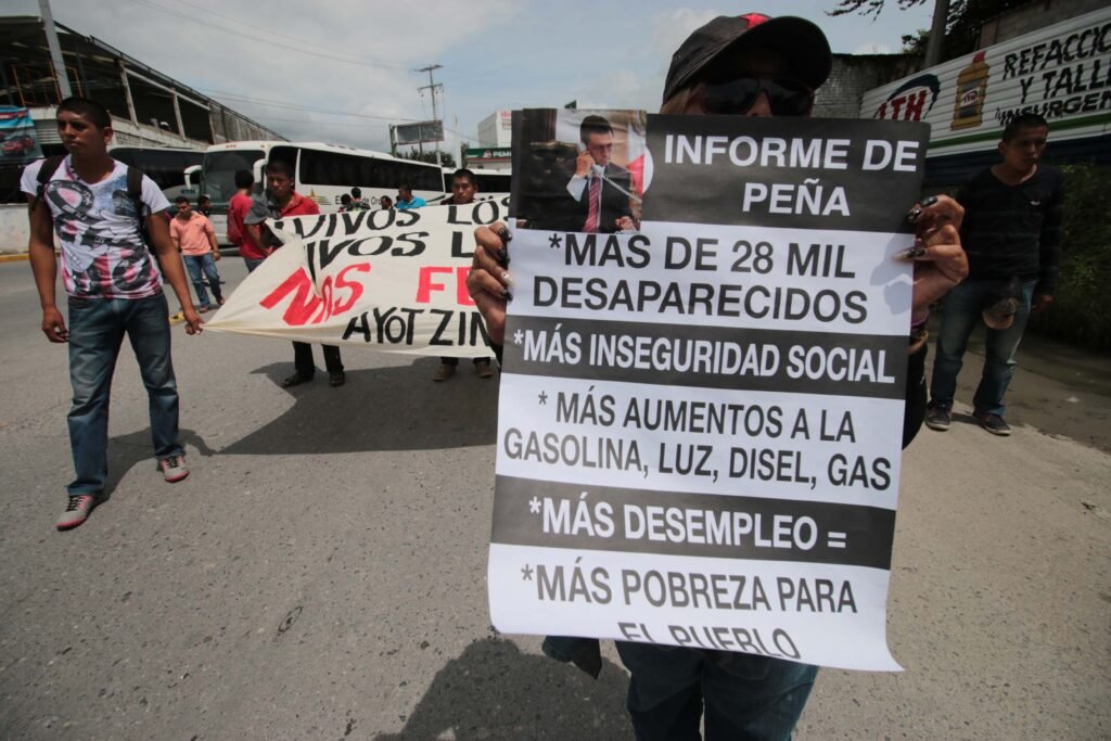 Pasado después del mediodía marcharon sobre la Autopista del Sol mientras gritaban la consigna “Repudio total, al informe presidencial”, en lo que fue el reinicio de la lucha magisterial contra la Reforma Educativa en Guerrero, y en el marco de la jornada de lucha de los padres de los 43 normalistas a tres años de los hechos ocurridos en Iguala.