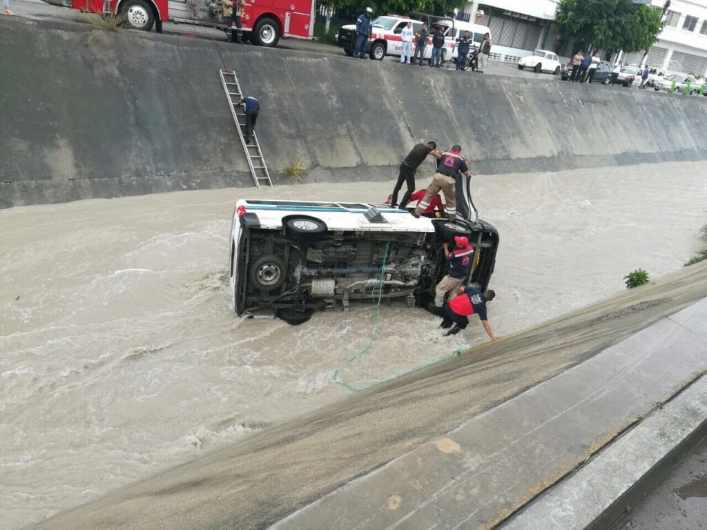 * El chofer iba con otras tres personas, al parecer todos en estado de ebriedad, cuando perdió el control de la unidad cayendo de costado en el encauzamiento