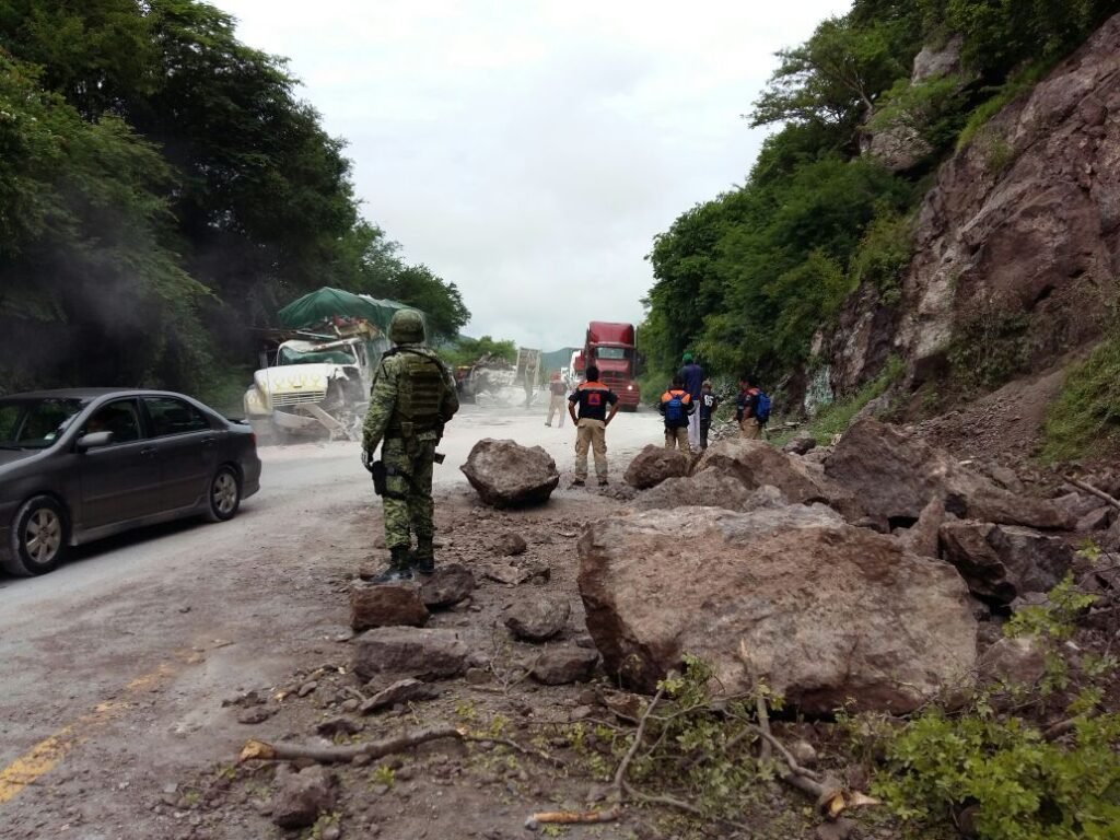 A las 5:00 de la mañana se movilizaron los rescatistas, militares y policías federales, quienes iniciaron los trabajos de retiro de escombro a la altura del punto conocido como “Las Antenas”, afectando a un tráiler y una camioneta de redilas, cuyos conductores tuvieron que ser auxiliados porque las rocas que se desprendieron del cerro se estamparon contra sus unidades: el tráiler se descompuso y la otra unidad, volcó.