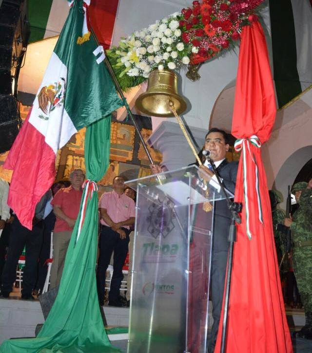 TLAPA.— Al grito de “Vivan los héroes que nos dieron Patria y Libertad”; “Viva Josefa Ortiz de Domínguez”, “Viva Allende”, “Viva Aldama”, “Viva Morelos”, “Viva Hidalgo”, “Viva Guerrero”, “Viva México”, gritó el alcalde Jesús Noé Abundiz García para luego hacer sonar la campana con la que también se recuerda el llamado que el cura Miguel Hidalgo y Costilla hizo para iniciar el movimiento independentista.