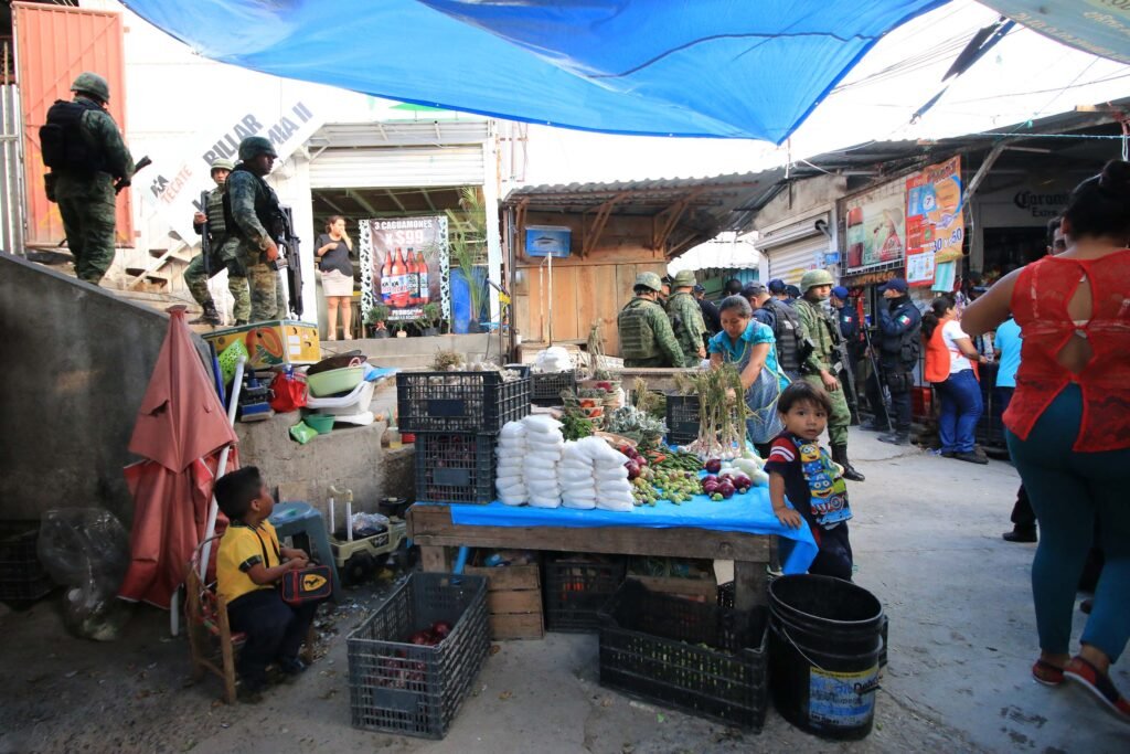 Ayer por la mañana, autoridades de Protección Civil acordonaron la zona afectada por el sismo en el mercado Baltazar R. Leyva Mancilla y retiraron a un grupo de comerciantes que se encontraban en el lugar.