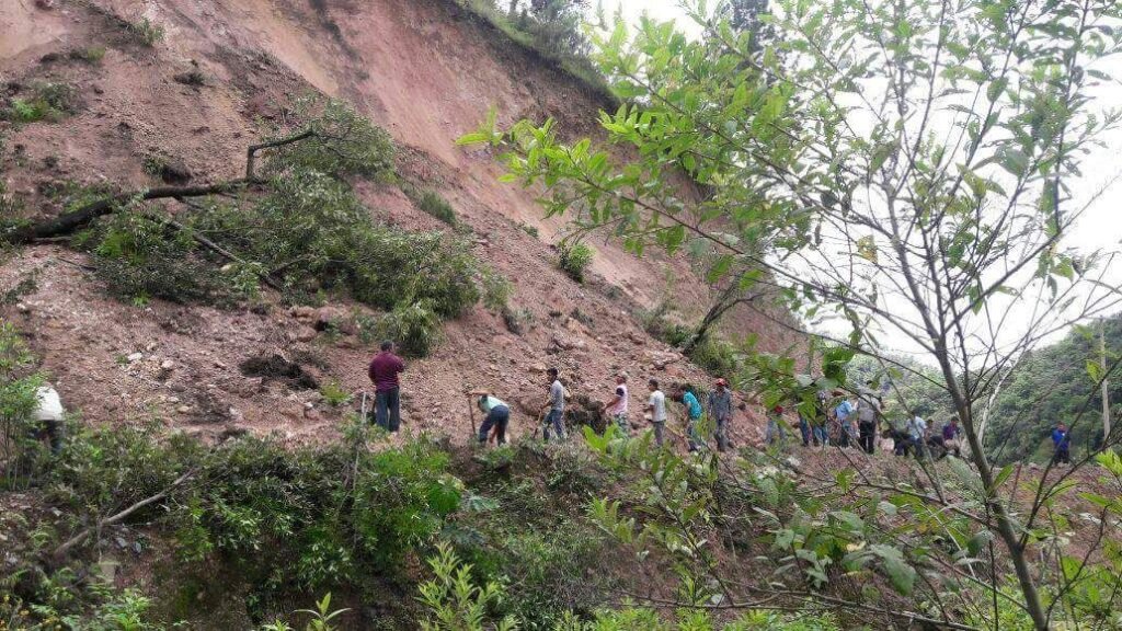 Desde la tarde del domingo, la localidad quedó totalmente incomunicada, luego de que varias toneladas de tierra se desgajaron y mantienen obstruida la única vía de comunicación para llegar al Ocotito.