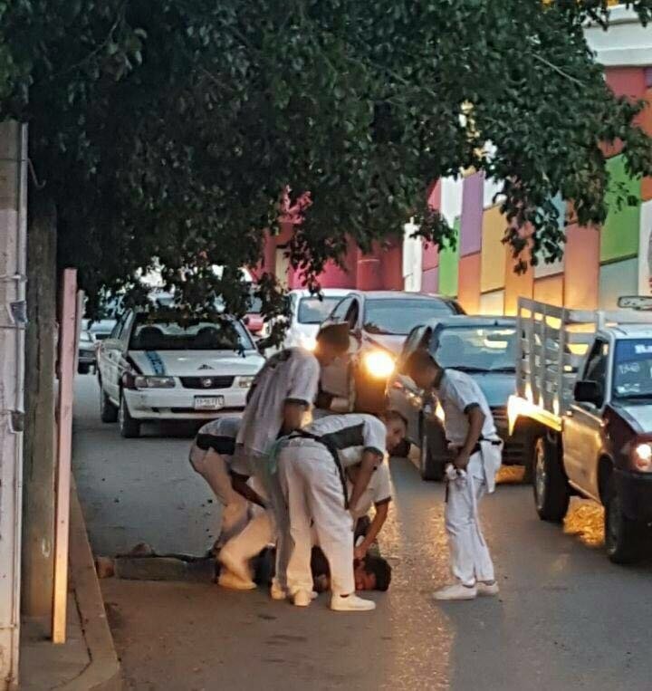 Los meseros entonces le dieron su respectiva ‘calentadita’ al delincuente y después lo entregaron a los elementos de la Policía Municipal, quienes lo trasladaron a las instalaciones de la Secretaría de Seguridad Pública Municipal, por el delito de lesiones en agravio de un elemento preventivo.