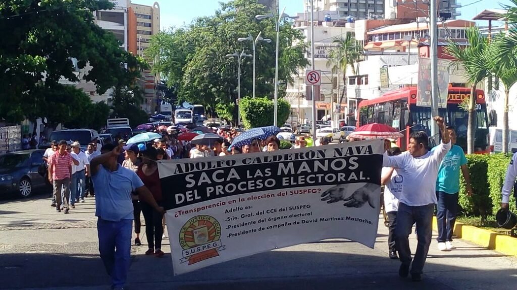 ACAPULCO.— Alrededor de 300 trabajadores del Sindicato de Servidores Públicos del Estado de Guerrero (SUSPEG), realizaron una marcha y bloquearon la costera “Miguel Alemán” y la avenida Cuauhtémoc, para exigir al actual secretario general de esa organización sindical, Adolfo Calderón Nava, que deje de intervenir en el proceso de renovación de la dirigencia.
