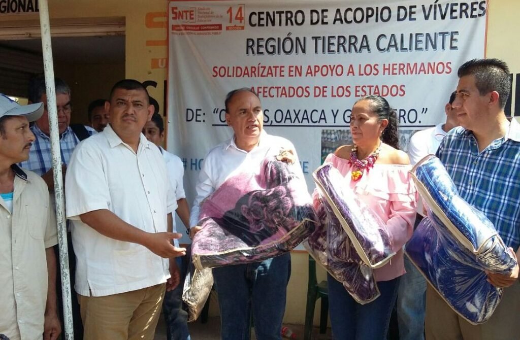 Señaló que pese a que en la Región Tierra Caliente las familias no fueron afectadas por los sismos de los días 7 y 19 de septiembre, sí hubo afectados por tormentas locales que inundaron viviendas y dañaron bienes materiales, particularmente en la comunidad de Guayameo, donde se desbordó un río e inundó 64 viviendas y dejó daños en el internado conocido como “Albergue Escolar”, además de afectaciones en una primaria, por lo que la Sección 14 del SNTE gestionó ante el ISSSTE hojas de préstamo para los trabajadores que los requieran.