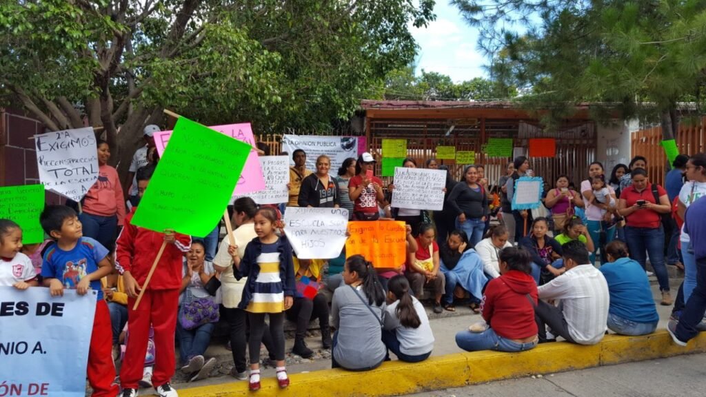 Padres de familia de la escuela primaria “General Antonio A. Guerrero” del barrio de San Antonio, protestaron y bloquearon una calle para exigir la reconstrucción del inmueble que sufrió daños por el sismo del pasado 19 de septiembre.