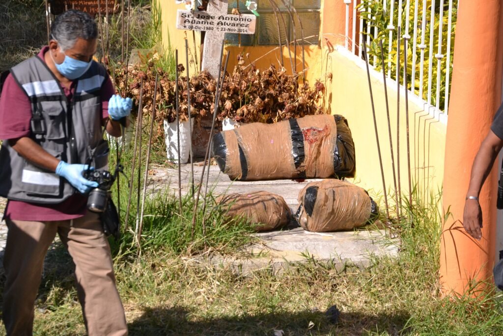 El occiso estaba desmembrado y distribuido en tres bolsas selladas con cinta canela y le faltaba la cabeza. Las autoridades deducen que se trata de una sola víctima. A un lado estaba una manta, cuyo contenido no fue dado a conocer