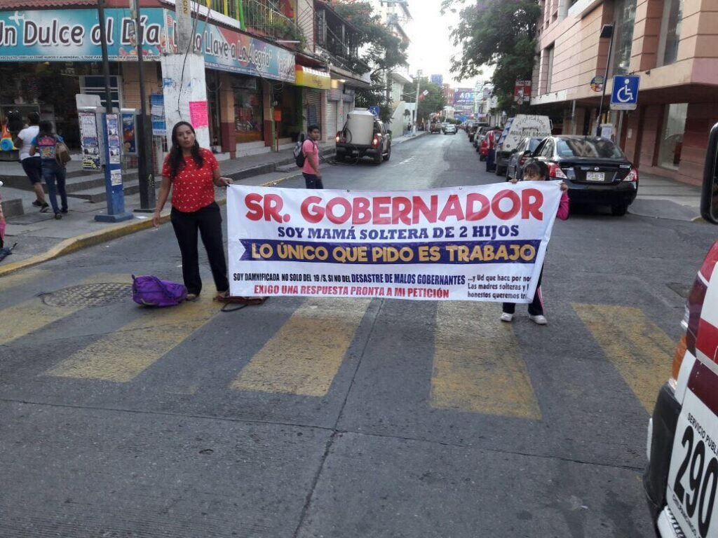 Una madre soltera protestó con un bloqueo en el centro para exigir un trabajo y denunciar el incumplimiento de la entrega de una plaza en el gobierno.