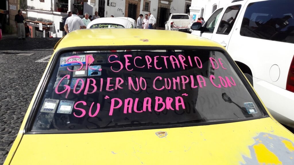 El bloque transportista integrado por las organizaciones “Pueblo Mágico de Taxco”, “Uchaat A.C.”, “Uaata A.C.” y “Tuspac”, inició su marcha de la colonia El Gigante, donde en un primer momento expusieron la problemática al delegado de Transporte en la zona Norte, Alan Francisco de la Sancha Arzate, y posteriormente recorrieron en caravana la carretera federal hacia el centro de la ciudad.