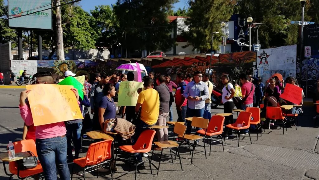 Por un conflicto entre maestros de base adheridos al Sindicato de Trabajadores Académicos de la Universidad Autónoma de Guerrero (STAUAG), y becarios o interinos, alumnos de la Facultad de Derecho, bloquearon la avenida Lázaro Cárdenas.