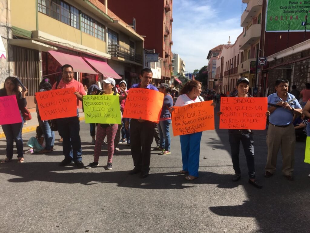 Trabajadores del Ayuntamiento que pertenecen al Sindicato Independiente de la Sección 14, bloquearon las principales vialidades del centro de la ciudad para exigir el pago de su quincena.