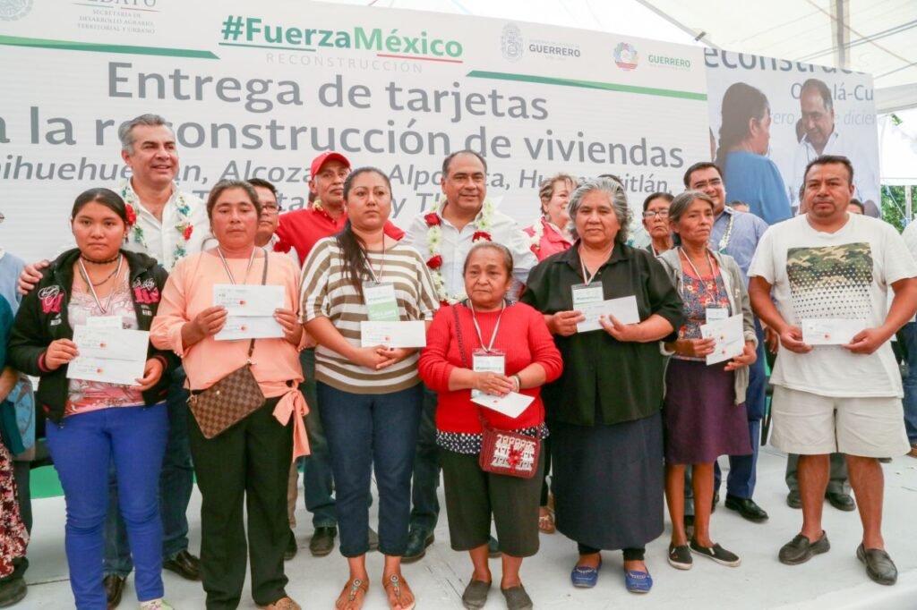 XOCHIHUEHUETLÁN.— El camino ha sido largo pero se cumple el compromiso del presidente Enrique Peña Nieto con los damnificados por el sismo del 19 de septiembre, afirmó el gobernador Héctor Astudillo Flores, durante la cuarta entrega de tarjetas de reconstrucción de viviendas para habitantes de Xochihuehuetlán, Alcozauca, Alpoyeca, Huamuxtitlán, Tlalixtaquilla y Tlapa, con una inversión de 45 millones de pesos.