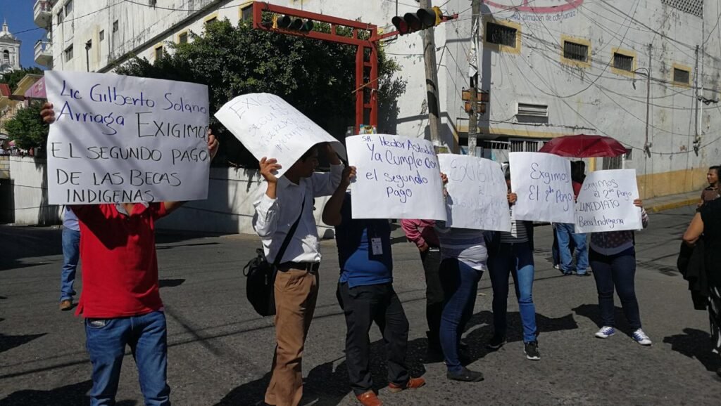 Los quejosos dijeron que los 485 estudiantes indígenas reciben dos pagos al año, cada uno de 4 mil pesos, pero la segunda parte de 2017, que debió haber sido depositada en noviembre pasado no se les ha cubierto.