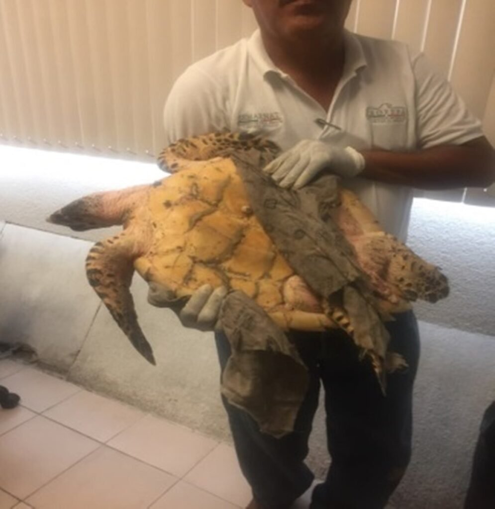En este sentido, el quelonio fue trasladado a la veterinaria ¨El Cano 31¨, en donde personal médico veterinario informó que la tortuga presentó septicemia y una deshidratación severa ocasionada por el adelgazamiento provocado por un invertebrado marino conocido como balano o sacabocado, mismo que causó debilidad inhibiendo su habilidad de alimentarse, dañando sus aletas, piezas bucales y ojos.