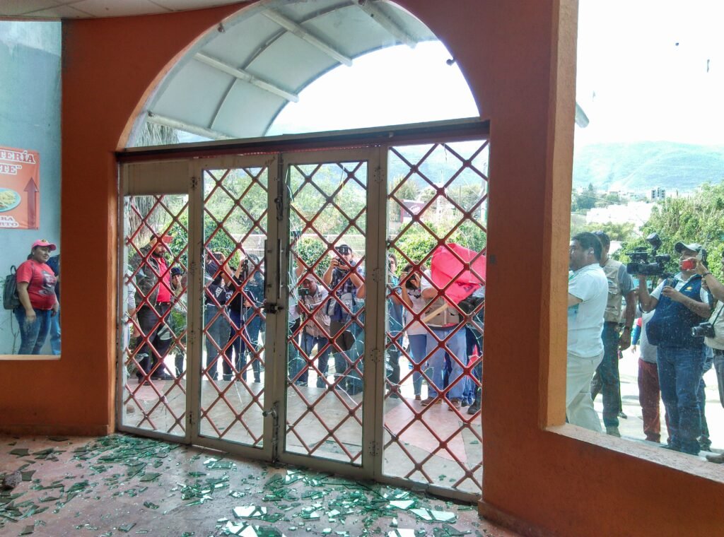 Los maestros entonces dieron cátedra de vandalismo al romper los cristales de la fachada a pedradas y patadas. Sólo resistieron la agresión los ventanales de acrílico.