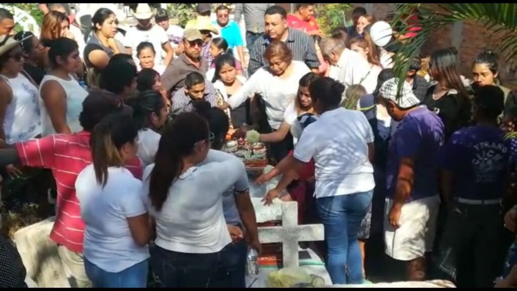 Con el dolor a tope tras ser despedido por la mayoría de sus familiares, el ataúd desapareció de la vista de los presentes bajo una plancha de cemento, a lo que siguieron gritos de justicia, alto a la violencia.