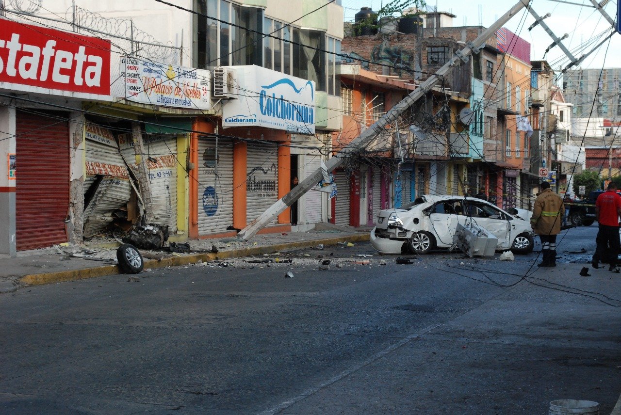 El poste ‘de luz’ se venció por su propio peso, cortando el suministro de energía a las colonias circunvecinas; además, como cayó encima de otros cables, también afectó a líneas de otros servicios, además de bloquear por completo la circulación vehicular de la mencionada arteria.