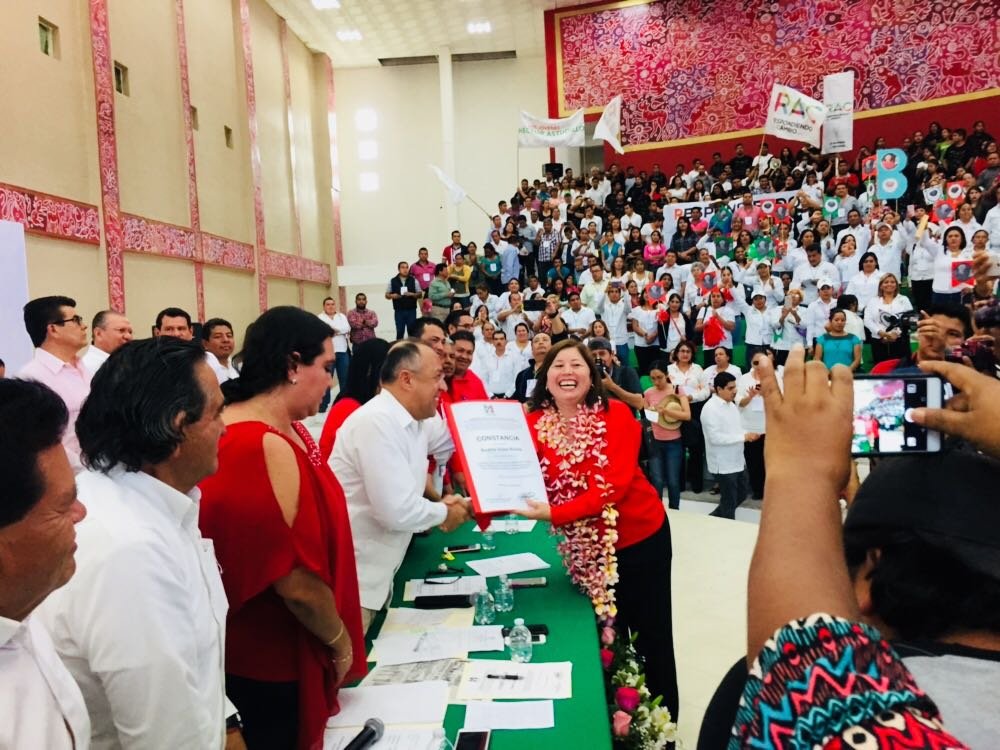 La también diputada federal fue ungida en el auditorio de la sede estatal priista de esta capital, donde la presidenta de la Comisión de Procesos Internos en el municipio, Isabel Rodríguez Córdova, dio a conocer que a la Convención asistieron 792 consejeros que eligieron por unanimidad a Vélez Núñez.