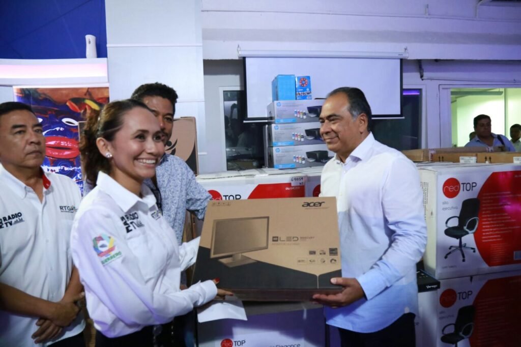 Durante su visita a las instalaciones de RTG, acompañado por el secretario de Finanzas y Administración, Héctor Apreza Patrón y el director general de RTG, Bismark Villanueva Bracho, el gobernador saludó al personal administrativo, operativo y delegados regionales a quienes entregó equipo de trabajo y les reconoció su labor al frente de este organismo público que se encarga de mantener informada a la ciudadanía de manera democrática, equilibrada, plural y objetiva.