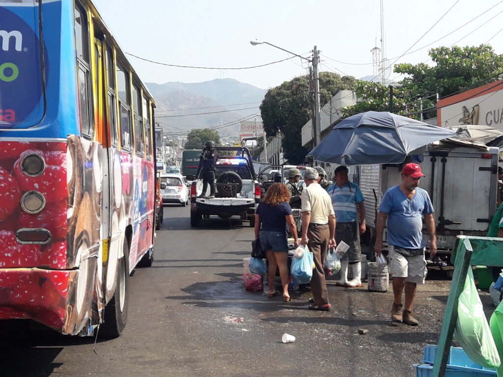 Policías estatales, municipales y militares se trasladaron a la zona de la agresión, en donde se entrevistaron con otros comerciantes, quienes seguían vendiendo su producto como si nada hubiera pasado.