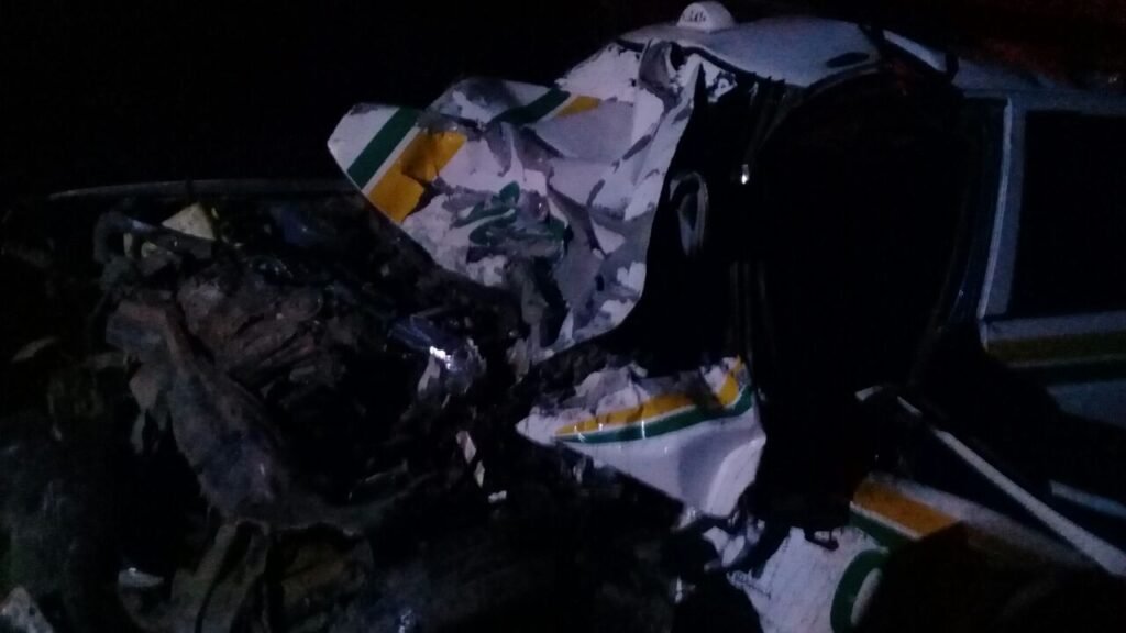 * El chofer de la unidad de alquiler al parecer se quedó dormido e invadió carril, impactándose frontalmente en la pesada unidad, murió al instante