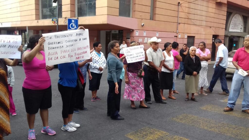 Desde las 09:00 horas de este jueves, más de 50 vecinos de la colonia Figueroa Mata, ubicada al poniente de la capital, bloquearon la avenida Benito Juárez, esquina con la calle Morelos, cerca del palacio municipal.