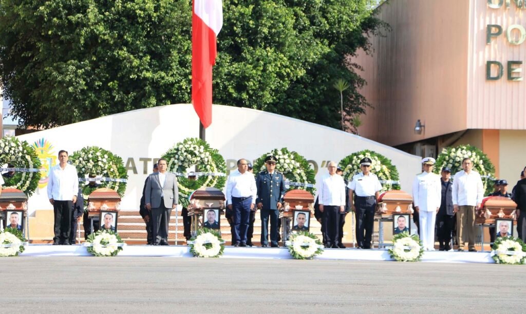 Con un llamado enérgico a las autoridades municipales para que de manera decidida se sumen a los trabajos de combate contra la delincuencia, el gobernador Héctor Astudillo Flores encabezó este jueves un homenaje póstumo de cuerpo presente a los seis elementos de la Policía del Estado asesinados en una emboscada en Zihuatanejo, en la Costa Grande.