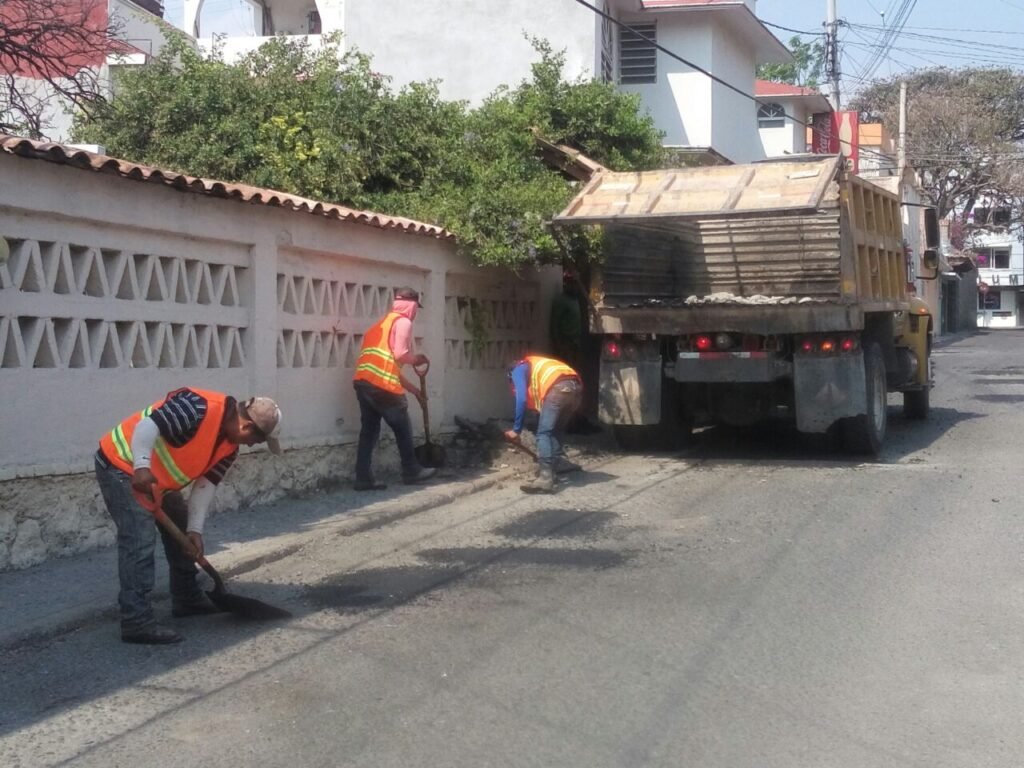 Personal del Programa de Bacheo reparó los baches que se encontraban en la calle Adrián Castrejón, principalmente, en el tramo que comprende de la avenida Juan Ruiz de Alarcón a la Miguel Alemán, en las colonias Universal y Cuauhtémoc Sur, de esta ciudad.