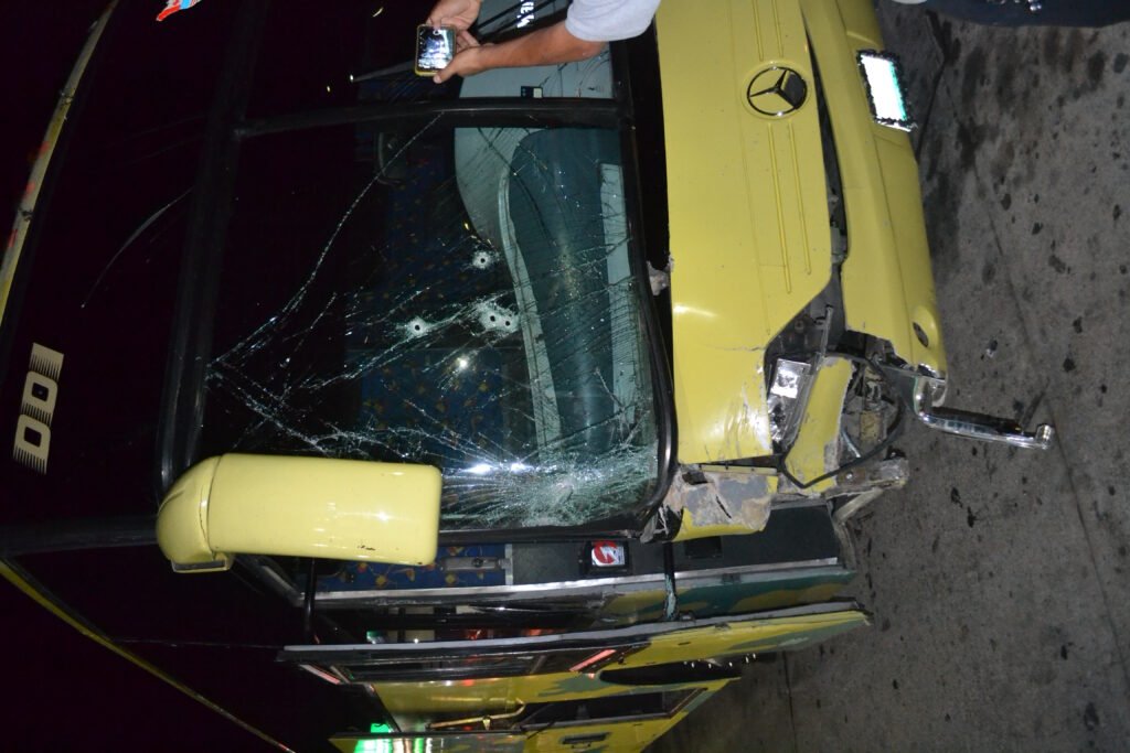 El operador del camión turistero, de la marca Mercedes Benz, color amarillo con verde, con número económico 01 y placas 611-RM-7, lejos de frenar, acelero, llevándose la unidad atravesada, logrando pasar el obstáculo. Desafortunadamente, eso provocó que los presuntos ladrones reaccionaras disparando en repetidas ocasiones contra la unidad.
