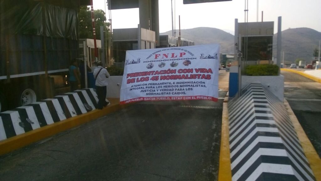 Integrante del Frente Nacional por la Liberación de los Pueblos (FNLP) tomaron la caseta de peaje Palo Blanco en apoyo a los normalistas de Ayotzinapa que fueron desaparecidos, atacados y asesinados a balazos en Iguala.