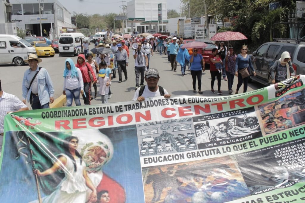 Un grupo de alrededor de 150 docentes, liderados por Antonia Morales Vélez, marcharon en la capital del Estado, de la Alameda Granados Maldonado al Congreso Local, organismo a quien acusaron de ser cómplice en la aprobación de la Reforma Educativa.