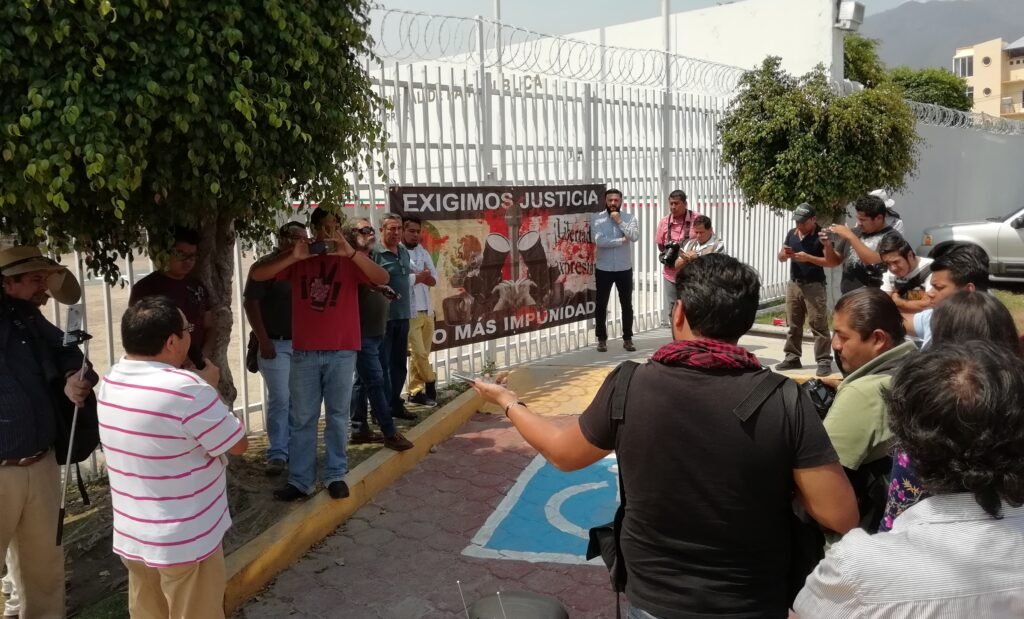 Después de las 11:00 horas, una treintena de reporteros se dio cita en las oficinas de la PGR en esta capital donde instalaron una lona donde se exige justicia por las agresiones y crímenes cometidos contra periodistas.
