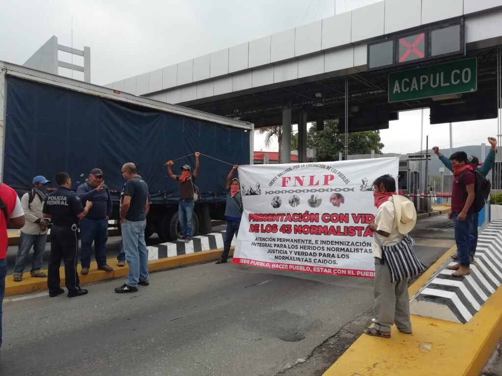 Los manifestantes realizaron un plantón en el antimonumento a los 43 en ese lugar y bloquearon la avenida Lázaro Cárdenas, en el sentido hacia el centro de esta ciudad.