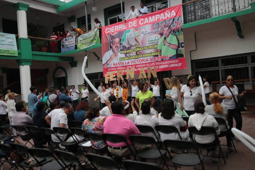 Este miércoles y tras 20 días de campaña, los candidatos registrados Fernando Zúñiga Patricio y José Antonio Salvador López celebraron el término de este periodo y convocaron a los sindicalizados a participar en una jornada electoral tranquila y sin descalificaciones.
