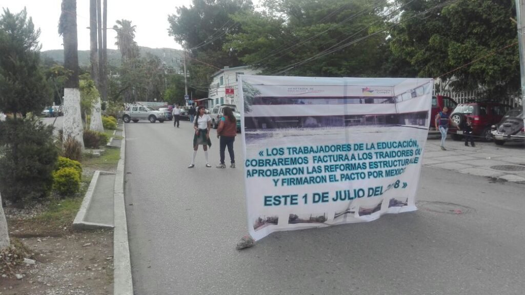 Indicaron que esta protesta forma parte de las acciones convocadas por la Coordinadora Nacional de los Trabajadores de la Educación (CNTE) en contra de la reforma educativa y la exigencia para la instalación de una mesa única nacional con el gobierno federal.