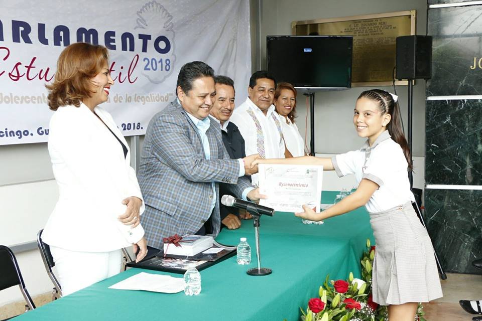 Mencionó que “por medio de la educación, una o uno de ustedes, estudiantes que hoy representan a parlamentaristas guerrerenses, puede llegar a ser gobernador del estado, y muchos de ustedes serán los legisladores y gobernantes del mañana”.