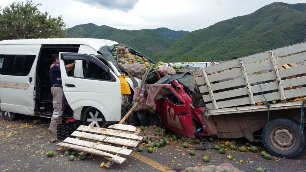 El choque fue aparatoso, pues ningún conductor frenó, ocasionando que toda la carga que transportaba la camioneta, mangos, nanches, aguacates y otras frutas, salieran expulsada contra la urvan. En tanto, los pasajeros de la unidad pública resultaron golpeados.