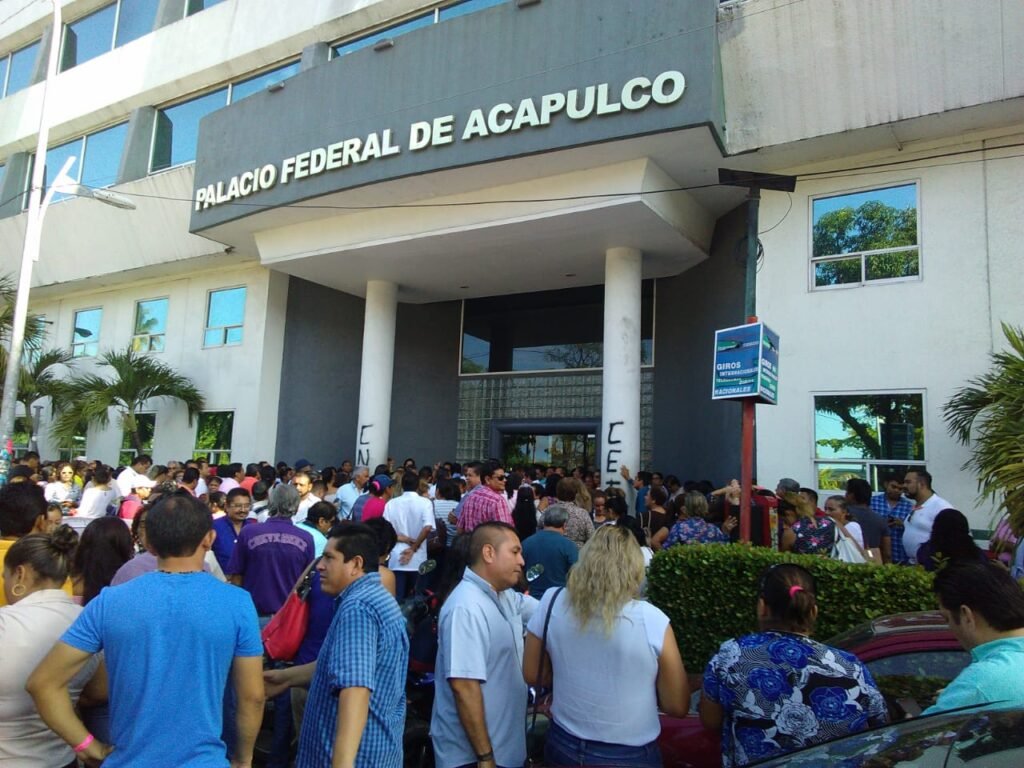 ACAPULCO.— Alrededor de 200 trabajadores del Ayuntamiento de Acapulco cerraron el Palacio Federal, ubicado sobre la Costera Miguel Alemán, a unos metros del zócalo porteño, para protestar porque el gobierno que encabeza Evodio Velázquez Aguirre no ha cumplido con el pago de bonos, Fonacot, Fovissste, ISSSPEG y prima vacacional.