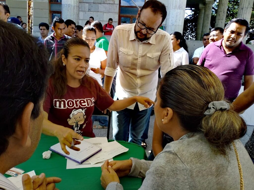 La morenista participó ayer en la Feria de Servicios Públicos Municipales realizada en el zócalo capitalino, junto al alcalde priísta Marco Antonio Leyva Mena.