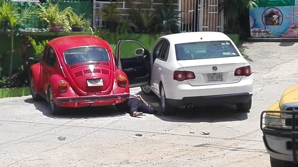 * La víctima quedó tirado entre un automóvil Volkswagen, sedán y un Bora de la misma marca, el cual tenía la puerta del conductor abierta, como si ésta hubiera tratado de subir a dicha unidad