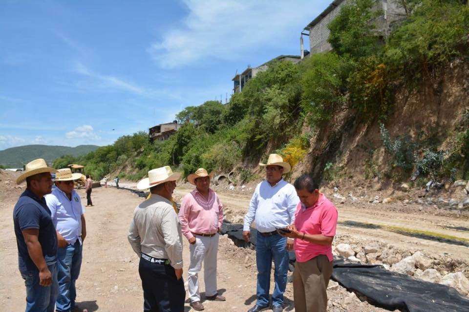 TLAPA.— El alcalde Jesús Noé Abundiz García, junto al delegado de Gobierno de la zona de la Montaña, Arturo Bonilla Morales, supervisó la construcción del gran muro de gaviones que la Comisión Nacional del Agua (Conagua) está ejecutando en la barranca de Contlalco.