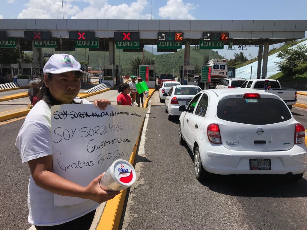 Por segunda ocasión en menos de una semana, un grupo de personas con discapacidad se instalaron en los accesos a la caseta de peaje ubicada a la altura de la comunidad de Palo Blanco, sobre la Autopista del Sol, para pedir cooperación y exigir al gobierno del estado una mesa de negociación donde pedirán el incremento al apoyo mensual que reciben de las autoridades que es de 500 pesos.