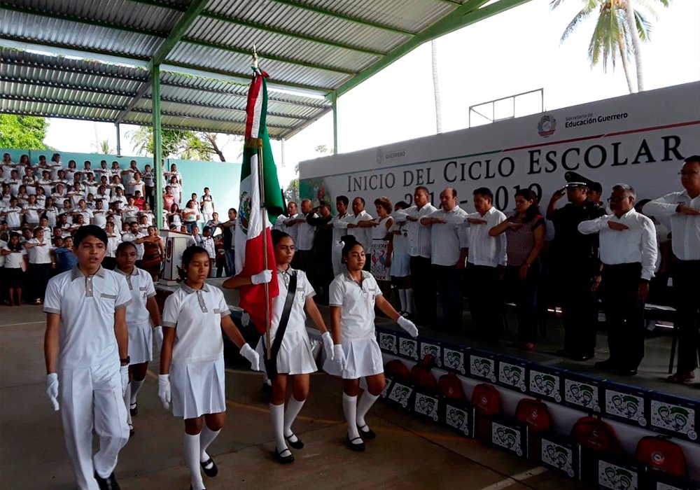 ACAPULCO.— Al encabezar la ceremonia oficial en la que arrancó el Ciclo Escolar 2018-2019, en la Escuela Secundaria Técnica 79 “José Vasconcelos” de la colonia La Poza, el gobernador Héctor Astudillo Flores dijo que regresaron a clases un millón 230 mil alumnos, en más de 12 mil 300 planteles públicos y privados en los niveles de preescolar, primaria, secundaria, media superior y superior en todo el estado.